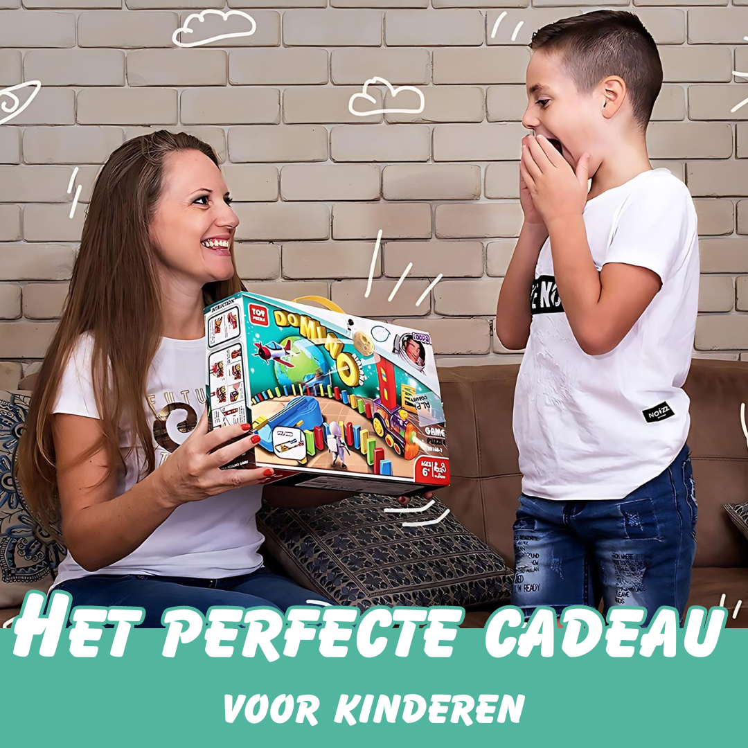 - Automatischer Zug, der die Dominosteine für einen einfachen und schnellen Aufbau platziert.