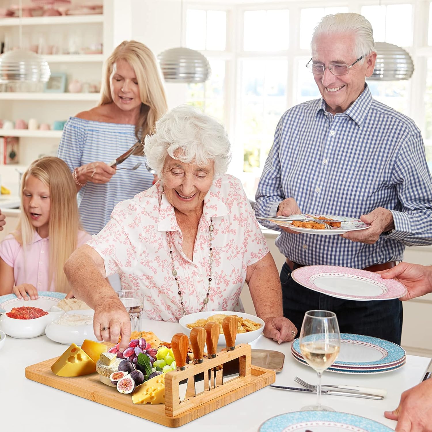 Machen Sie aus jedem Snack oder Fest einen besonderen Anlass mit diesem kompletten Käsebrett Set. Das nachhaltige Bambus sorgt für eine warme, natürliche Ausstrahlung und ist gleichzeitig robust genug für den täglichen Gebrauch. Dank der vier enthaltenen Messer mit Bambusgriffen schneiden und servieren Sie mühelos verschiedene Käsesorten und Snacks. Die integrierte Aufbewahrungsbox hält alles ordentlich und kompakt, sodass Sie immer bereit sind, Gäste stilvoll zu empfangen.