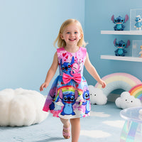 Disney Stitch Mädchen Ärmelloses Rundhalskleid mit Schleife & Blumenmuster - Leichter Polyester-Spandex