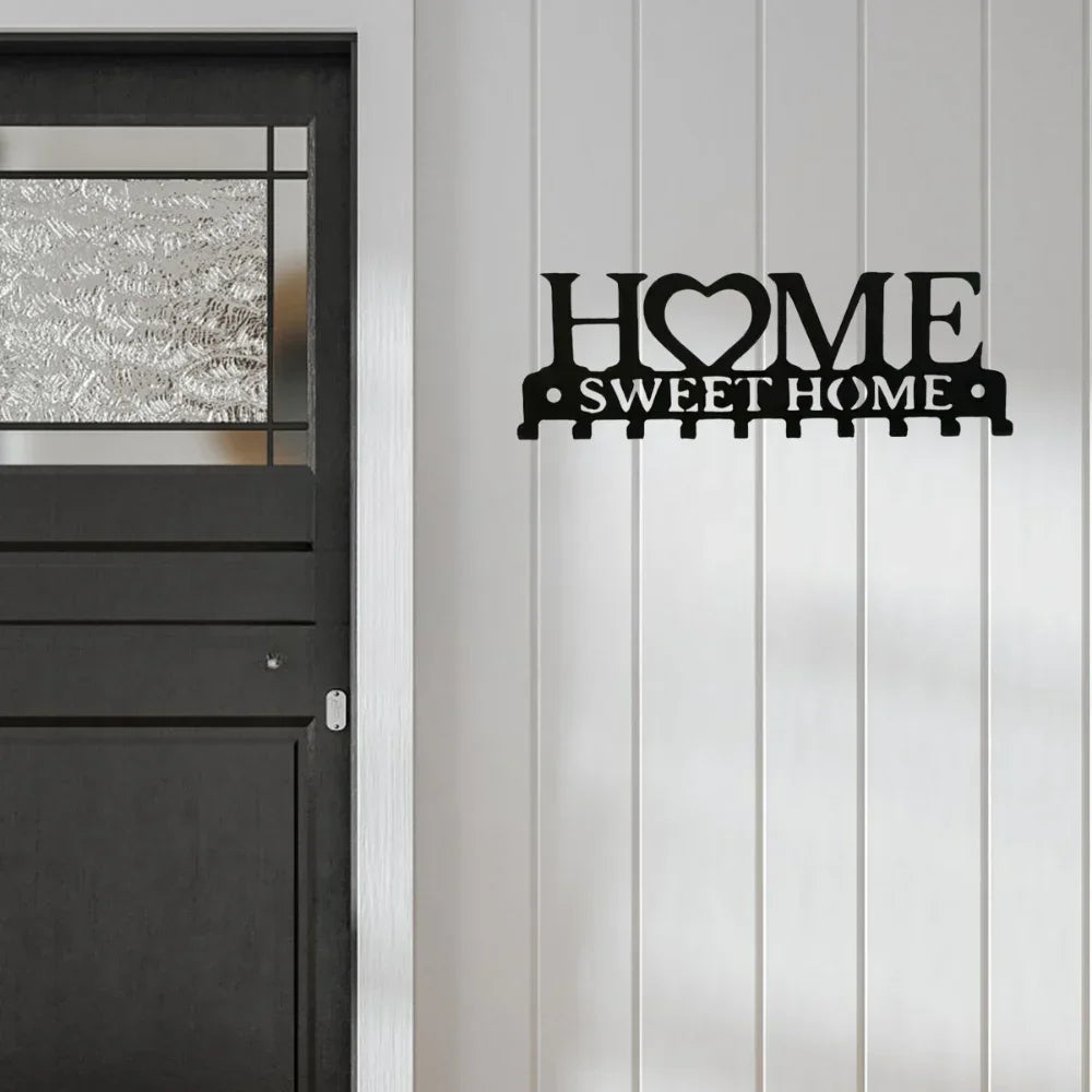 Bringe Stil und Organisation in dein Zuhause mit diesem eleganten wandmontierten Schlüsselhalter. Das kreative Design mit dem Text "HOME SWEET HOME" fügt ein charmantes Element deinem Eingangsbereich hinzu. Mit mehreren Haken ist er ideal, um Schlüssel, Jacken und andere Accessoires zu organisieren. Dieser Schlüsselhalter ist eine praktische und dekorative Lösung, die deinen Raum ordentlich hält.