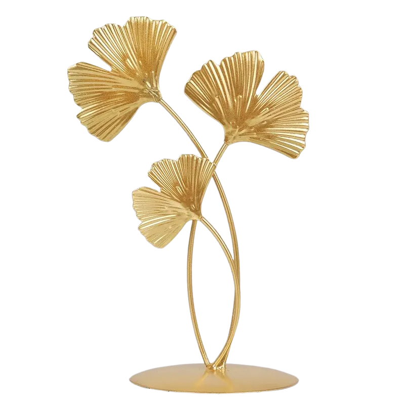 Diese elegante Ginkgo-Dekoration ist eine stilvolle Ergänzung für jeden Raum. Mit ihrem filigranen Design und der glänzenden goldenen Oberfläche verleiht sie Ihrem Interieur einen Hauch von Luxus. Perfekt als Tischdekoration oder in einem Regal, bringt sie eine natürliche und doch moderne Atmosphäre in Ihr Zuhause.