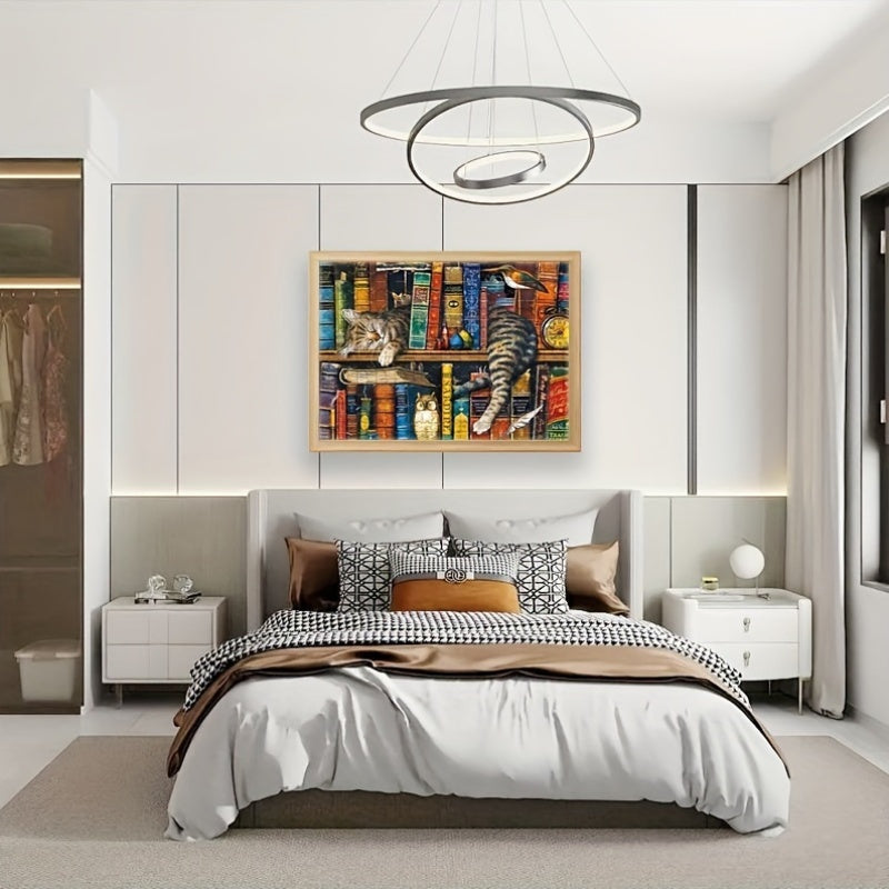Dieses 1000-teilige Puzzle mit einer niedlichen Katze, die gemütlich auf einem Bücherregal schläft, ist perfekt für Liebhaber von Katzen und Büchern. Das detaillierte Design bietet ein unterhaltsames und herausforderndes Erlebnis, während es gleichzeitig eine stimmungsvolle Atmosphäre schafft. Dieses Puzzle ist ideal für Familien und Freunde, um gemeinsam stundenlangen Puzzlespaß zu genießen.