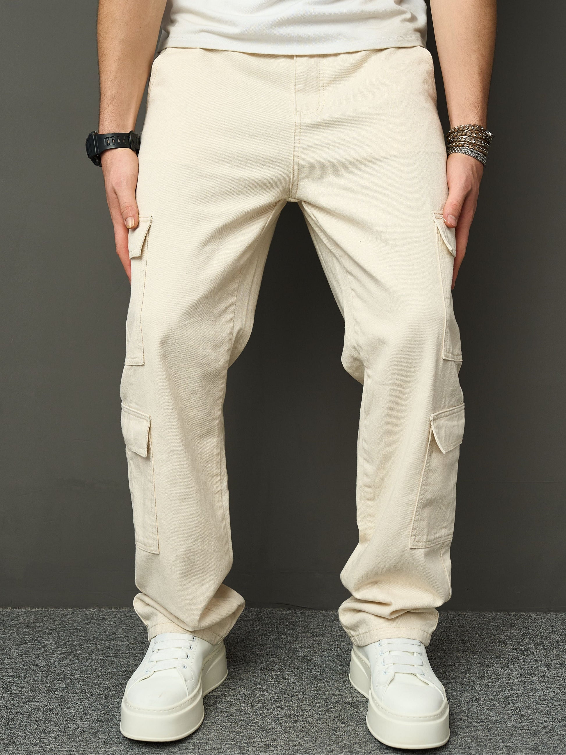 Diese lässige beige Denim Jeans kombiniert eine entspannte Passform mit mehreren funktionalen Taschen, perfekt für den täglichen Gebrauch. Der nicht dehnbare, robuste Stoff sorgt für Langlebigkeit und eine authentische Optik. Dank des komfortablen Modells ist diese Jeans für jede Jahreszeit geeignet und lässt sich leicht mit verschiedenen Stilen kombinieren. Eine vielseitige Wahl für Männer, die Komfort und praktische Details schätzen.