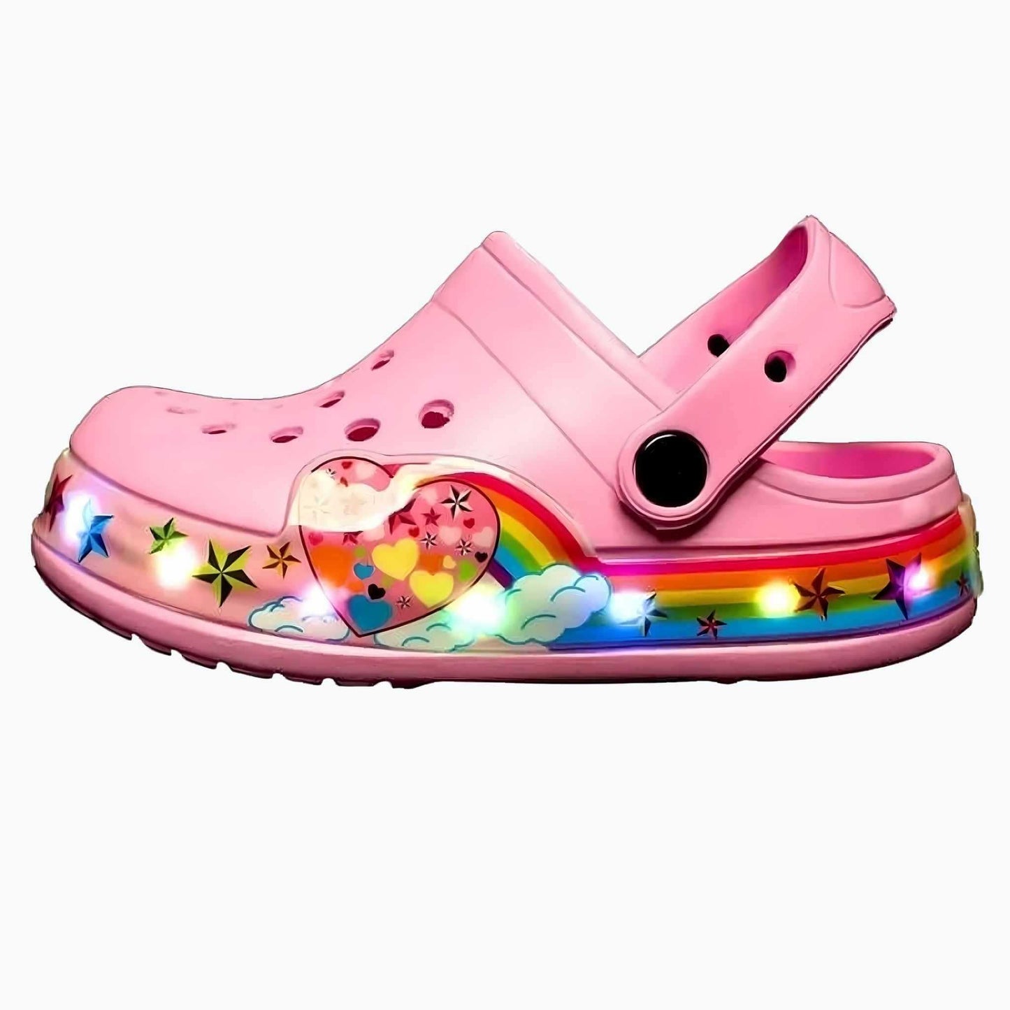 Diese farbenfrohen, leuchtenden Crocs sind perfekt für junge Abenteurer, die ihren Stil zeigen möchten. Mit einem niedlichen Design und fröhlichen Farben sorgen sie für viel Spaß bei jedem Schritt. Die bequeme Passform und atmungsaktive Materialien machen sie ideal für tägliche Abenteuer, egal ob drinnen oder draußen. Lass dein Kind mit diesen fröhlichen und praktischen Schuhen strahlen.