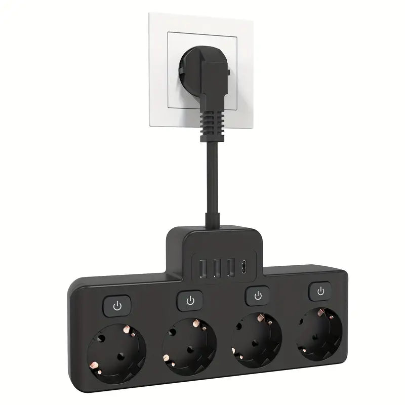 Der PowerHub Steckdosenadapter verwandelt eine einzelne Steckdose in eine vielseitige Ladestation. Mit drei Steckdosen und drei zusätzlichen USB-Anschlüssen ermöglicht dieser Adapter das gleichzeitige Laden und Betreiben mehrerer Geräte. Jede Steckdose verfügt über einen eigenen Schalter, sodass Sie die Stromversorgung individuell steuern können. Ideal für Zuhause oder das Büro, um Platz und Kabelsalat zu sparen.