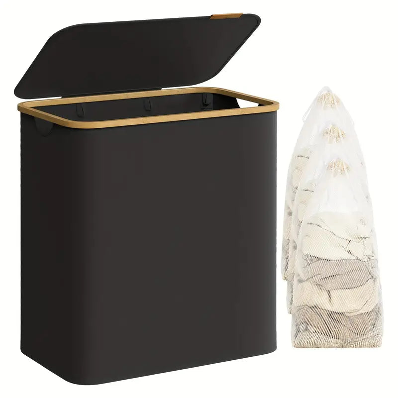 Mit diesem praktischen Wäschekorb wird das Sortieren von Wäsche deutlich einfacher. Die drei separaten Fächer ermöglichen es, Kleidung sofort nach Farbe oder Material zu trennen, wodurch du bei jedem Waschgang Zeit sparst. Der atmungsaktive Stoff hilft, unangenehme Gerüche zu vermeiden und hält die Wäsche länger frisch. Dank des modernen und schlanken Designs passt der Korb perfekt in jedes Schlafzimmer, Badezimmer oder Waschraum.
