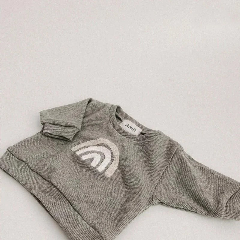 Dieses niedliche Kinderset mit Pullover und Hose ist perfekt für einen bequemen und trendigen Look. Hergestellt aus weichem, atmungsaktivem Material, bietet es sowohl Stil als auch Komfort für dein Kleines. Das fröhliche Design mit einem Sonnen- und Regenbogenmotiv macht es zu einem Favoriten für Jungen und Mädchen. Kunden erleben ein Gefühl von Niedlichkeit und Zufriedenheit, wodurch dieses Set ideal für den täglichen Gebrauch oder besondere Anlässe ist.