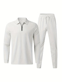 Dieses lässige 2-teilige Set für Männer ist perfekt für den Frühling und Herbst, mit einem stilvollen Polohemd mit Reißverschluss und einer bequemen Hose mit elastischem Bund. Das Waffelmuster fügt dem gesamten Outfit eine subtile, moderne Textur hinzu, was ihm einen raffinierten Look verleiht. Das Set wurde für maximalen Komfort und Vielseitigkeit entworfen, egal ob du dich zu Hause entspannst oder einen legeren Ausflug machst. Genieße den Luxus eines gut sitzenden und atmungsaktiven Outfits, das du jeden Tag tragen möchtest.