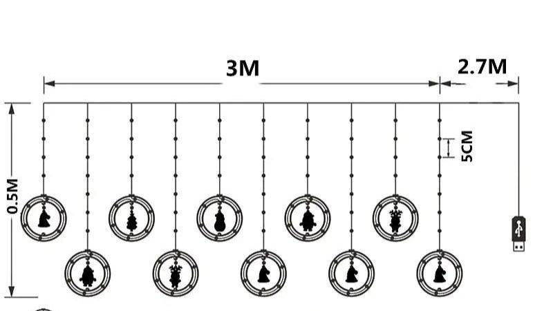 - Anzahl der Lichter: ca. 10 LED-Ringe mit verschiedenen Weihnachtsfiguren